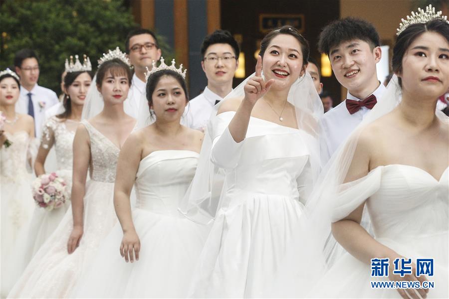 Am Samstag fand in Boao auf der südchinesischen Inselstadt Hainan eine Gruppenhochzeit statt. 30 Paare aus Beijing, Wuhan, Guangzhou und anderen Städten nahmen daran teil. (Xinhua, Foto vom 6. Juni 2020)