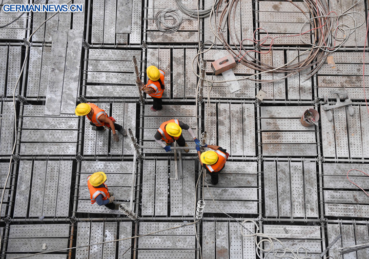 Arbeiter sind im Einsatz auf der Baustelle des Flussmündung-Durchgangsprojektes in Sanya in der südchinesischen Provinz Hainan. (Foto vom 5. Mai 2025, Xinhua/Zhao Yingquan)