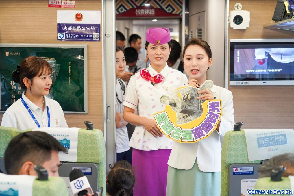 Zug mit Sanxingdui-Motiven in Chengdu in Betrieb genommen
