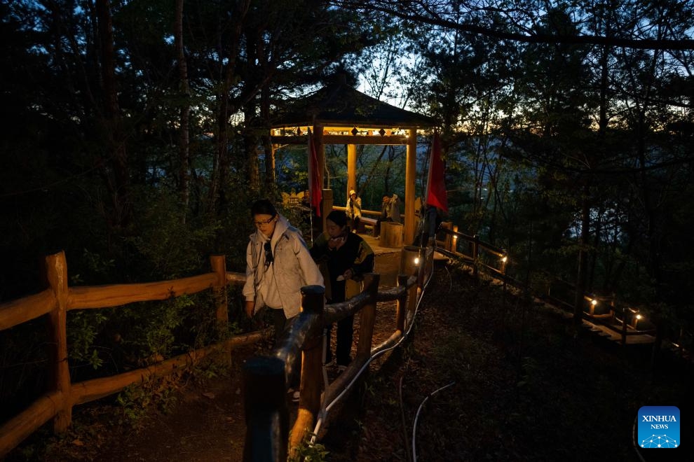 Touristen wandern zum Jinzu-Gipfel, um den Sonnenaufgang zu beobachten. (21. Mai 2025, Xinhua)