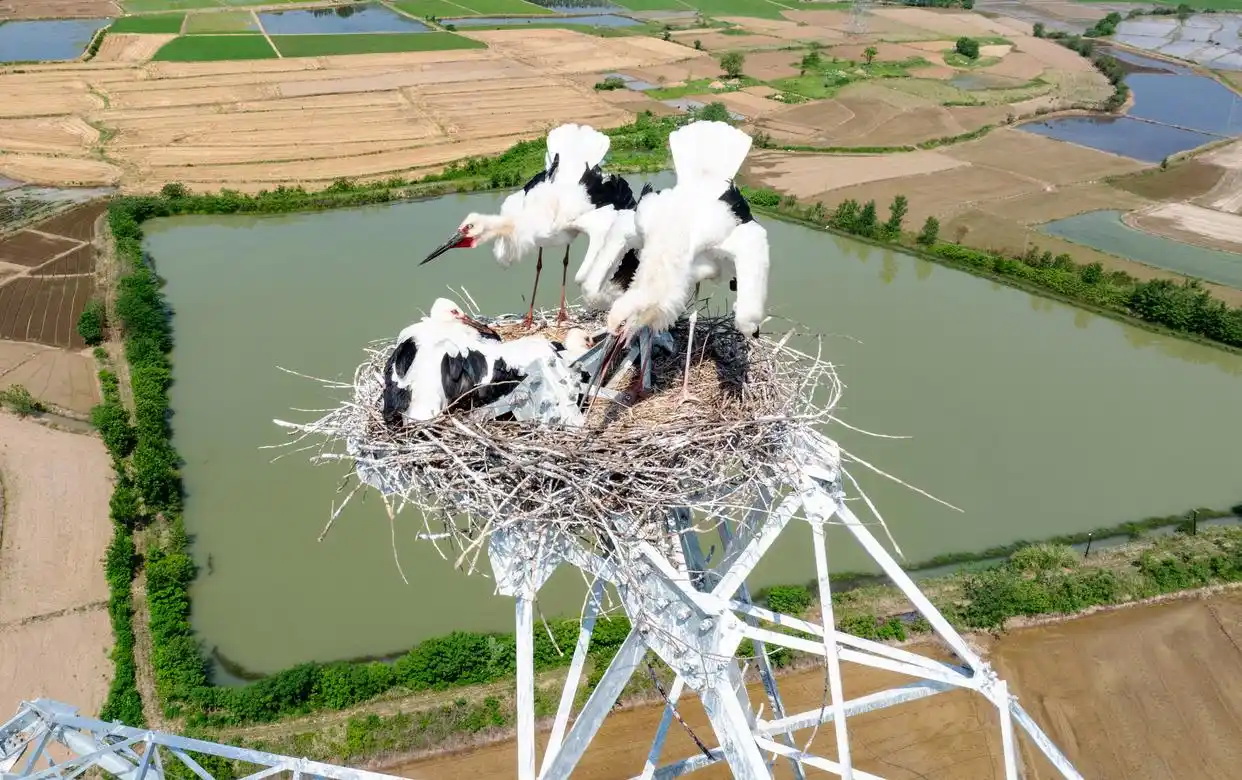 Anhui: State Grid verschiebt Bauarbeiten zum Schutz der Brut der Orientalischen Weißstörche