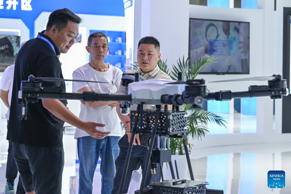 Menschen schauen sich Drohnen an. (22. Mai 2025, Xinhua)