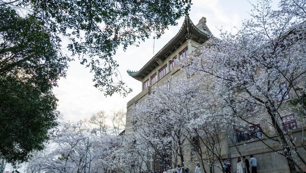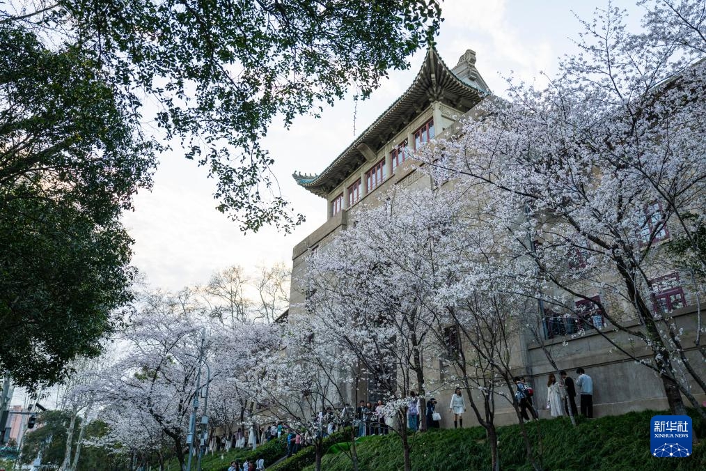 Besucher genießen die Kirschblüten in der Wuhan-Universität. (22. März 2025, Xinhua)