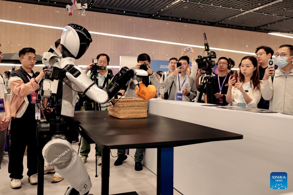 Besucher fotografieren einen Roboter im Wettbewerb „Sortieren von Kleinigkeiten“. (29. Mai 2025, Xinhua)
