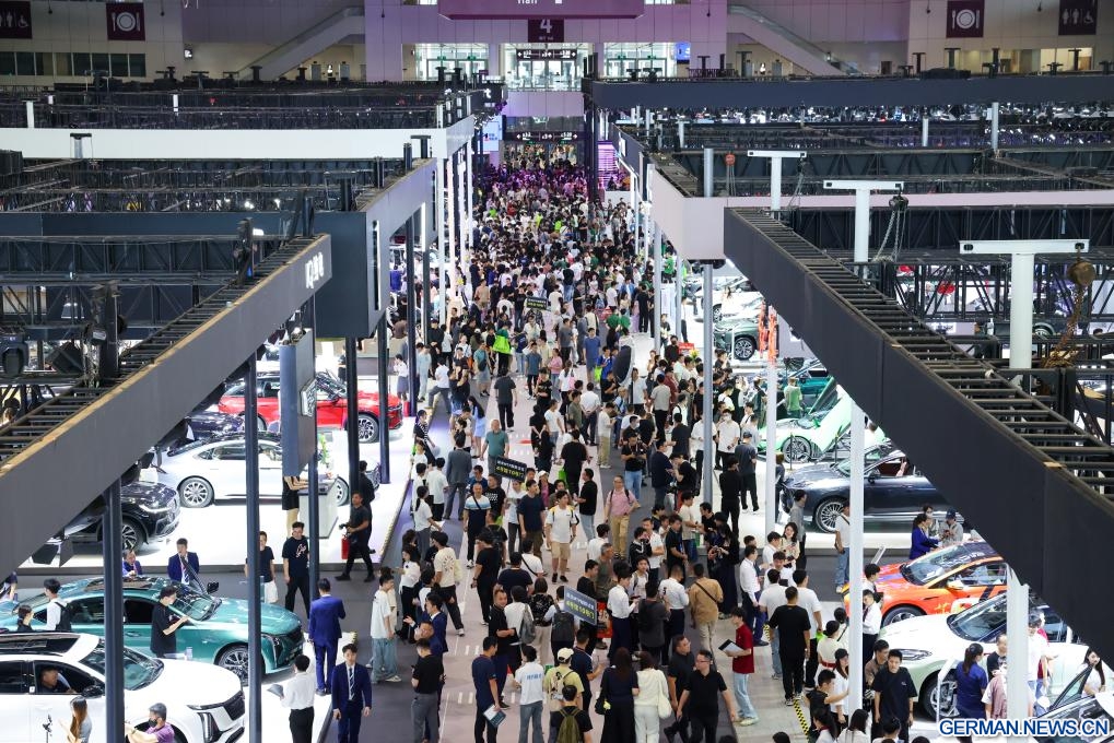 Besucher nehmen an der Internationalen Autoshow Guangdong-Hongkong-Macau Greater Bay Area 2025 in Shenzhen in der südchinesischen Provinz Guangdong teil, 31. Mai 2025. (Quelle: Xinhua/Liang Xu)