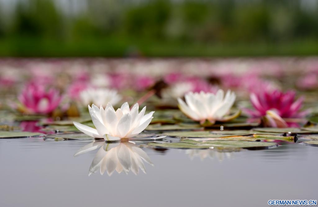 Dieses Foto vom 1. Juni 2025 zeigt einen Blick auf die Seerosen im China Flower Expo Park in Yinchuan im nordwestchinesischen Autonomen Gebiet Ningxia der Hui. (Quelle: Xinhua/Wang Peng)