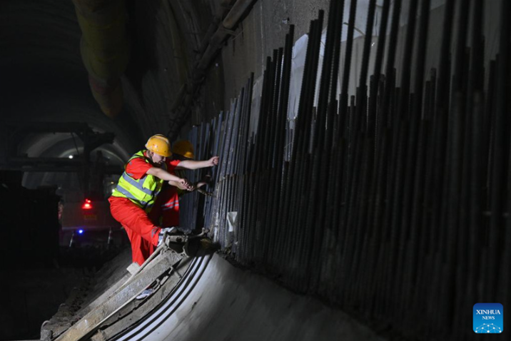 Arbeitseinsatz am 3. Juni 2025 im Zhongliangshan-Tunnel, einem Schlüsselprojekt entlang der Chongqing Rail Transit Line 15 in der südwestchinesischen Stadtverwaltung Chongqing. (Xinhua/Chen Cheng)