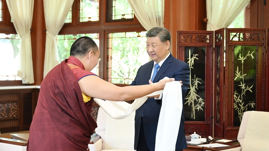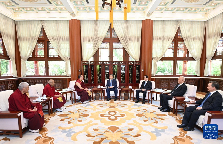 Xi ermutigte den Panchen, ein hochrangiger lebender Buddha des Lamaismus zu werden und einen größeren Beitrag zur Förderung der ethnischen Solidarität, religiösen Harmonie und stabilen Entwicklung des autonomen Gebiets Xizang zu leisten.