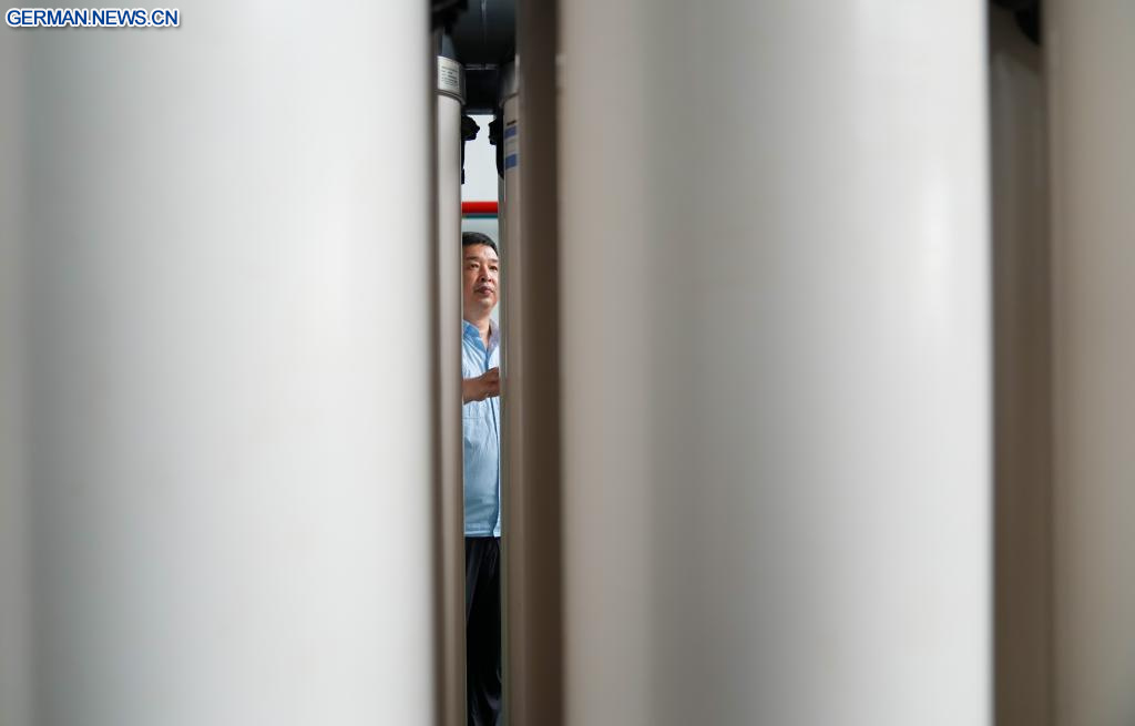 Ein Mitarbeiter patrouilliert in einer Meerwasserentsalzungswerkstätte der Jiangsu Fenghai New Energy Seawater Desalination Development Co., Ltd. in Yancheng in der ostchinesischen Provinz Jiangsu, 7. Juni 2025. (Quelle: Xinhua/Zhou Dixiao)