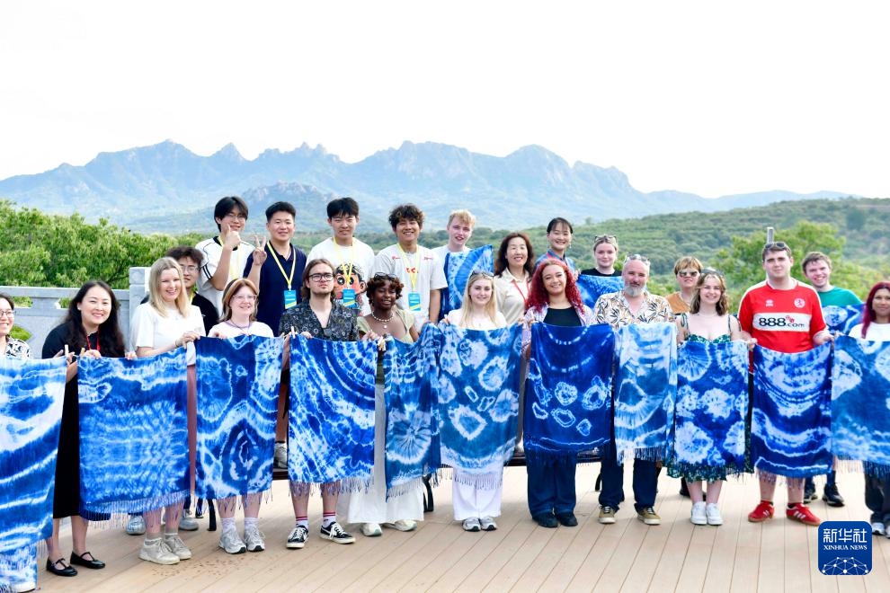 Studierende aus der Leeds Beckett University lernen Kenntnisse über Batik an der Fachhochschule Rizhao in der Stadt Rizhao in der ostchinesischen Provinz Shandong, 11. Juni 2025. (Quelle: Xinhua/Guo Xulei)