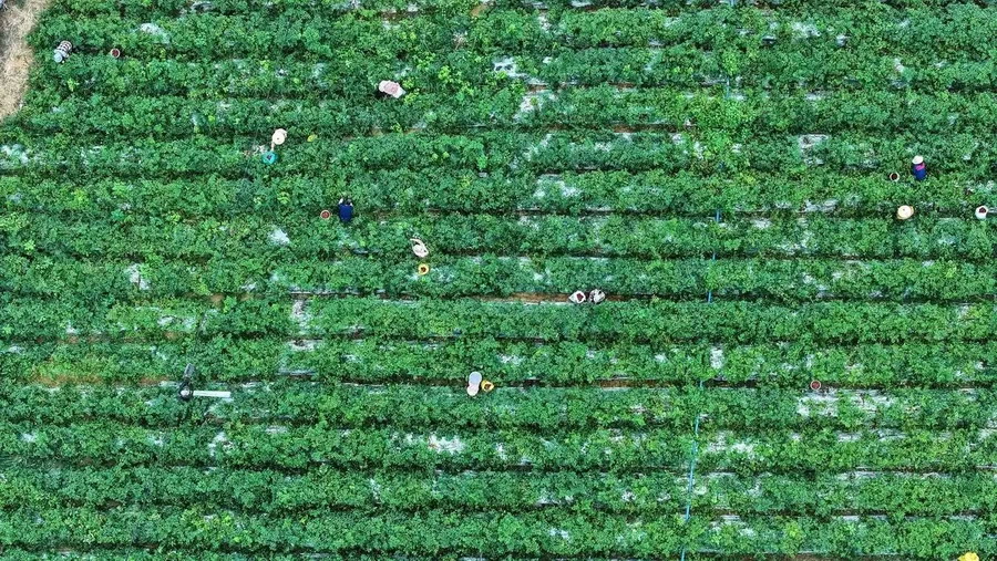Im Bezirk Qinnan der Stadt Qinzhou im Autonomen Gebiet Guangxi der Zhuang sind derzeit mehr als 5.360 Hektar Chilischoten reif für die Ernte. Wie am Donnerstag im Dorf Youbu der Gemeinde Shabu zu sehen war, pflücken die Bauern emsig die Schoten von den Pflanzen. Damit erlebt die Region eine der Haupterntezeiten des beliebten Nachtschattengewächses.