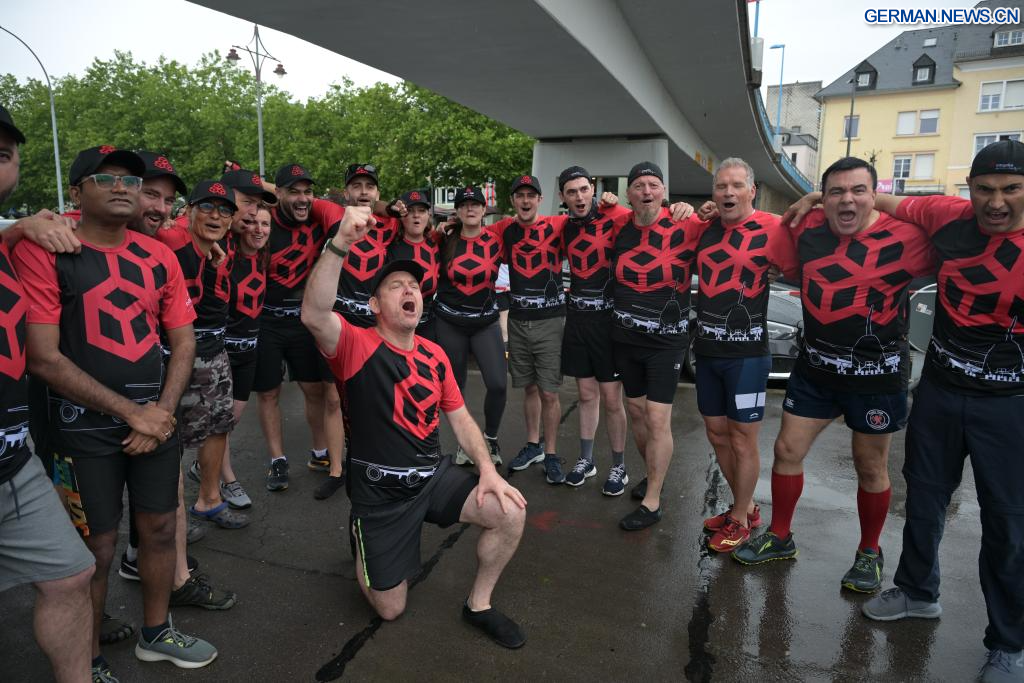 Menschen nehmen an einem Drachenbootrennen in Remich, Luxemburg, teil, 15. Juni 2025. (Quelle: Xinhua/Gao Yi)