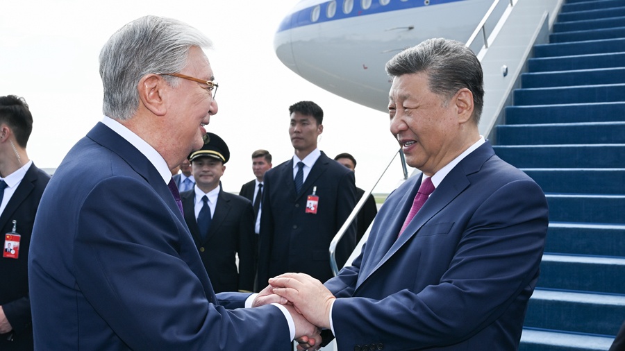 Entlang der Route zum Flughafen schwenkten Vertreter chinesischer Unternehmen und Studenten an beiden Seiten der Straße die Nationalflaggen Chinas und Kasachstans und gratulierten herzlich zur erfolgreichen Teilnahme Xi Jinpings am China-Zentralasien-Gipfel.