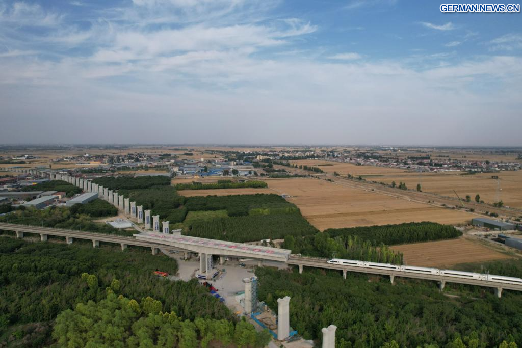 Drehbrücke der Hochgeschwindigkeitsbahnstrecke Xiong'an-Xinzhou erfolgreich in gewünschte Position gedreht