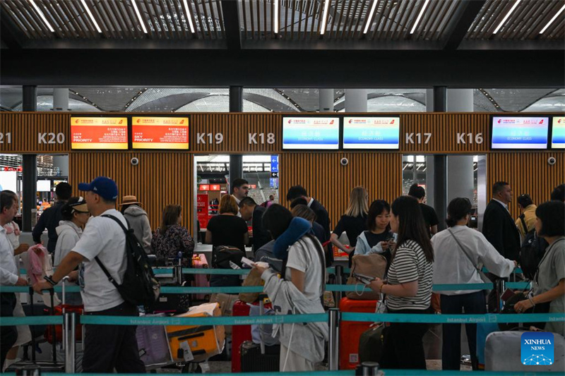 Fluggäste stehen am 24. Juni 2025 in der Warteschlange von China Eastern Airlines am Flughafen Istanbul, um für den ersten Direktflug nach Xi’an einzuchecken. (Foto: Xinhua/Liu Lei)