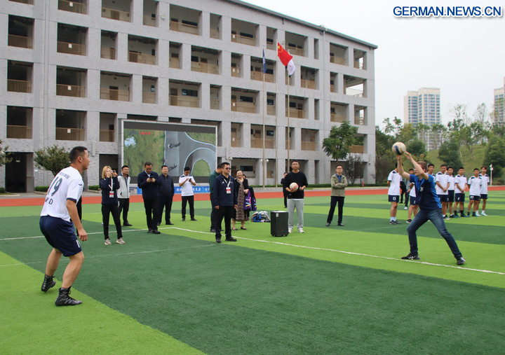 Mitglieder einer Faustballmannschaft trainieren in Chengdu in der Provinz Sichuan im Südwesten Chinas, 24. Oktober 2024. Faustball ist vor allem in deutschsprachigen Ländern wie Deutschland, Österreich und der Schweiz beliebt. (Xinhua)
