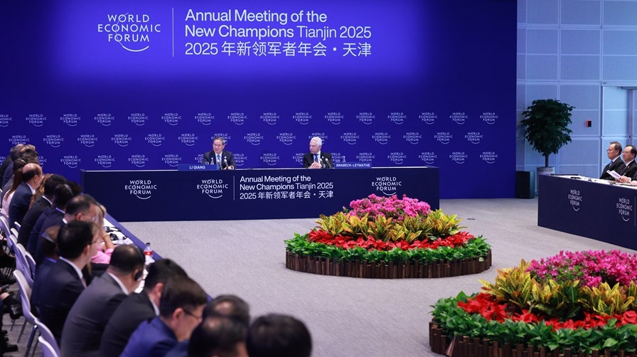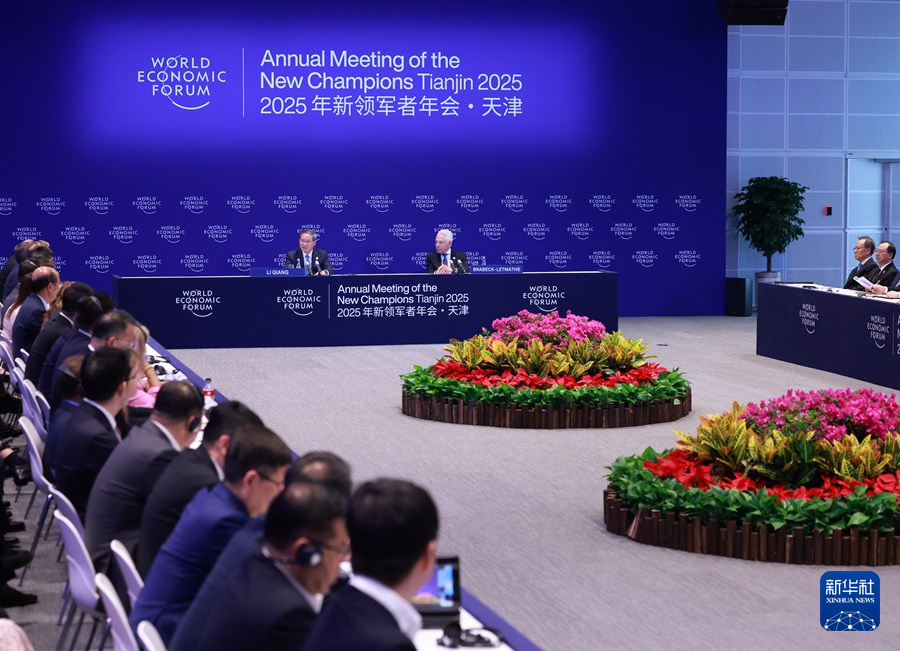 Der chinesische Ministerpräsident Li Qiang hat sich am Mittwoch bei einem Symposium im Rahmen des 16. Jahrestreffens der neuen Champions, auch bekannt als Sommer Davos, in der nordchinesischen Stadt Tianjin mit Unternehmern ausgetauscht.