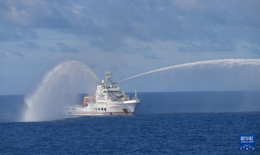 Schiffe führen eine Brandbekämpfungsübung durch. (Foto vom 26. Juni 2025, Zhao Yingquan/Xinhua)