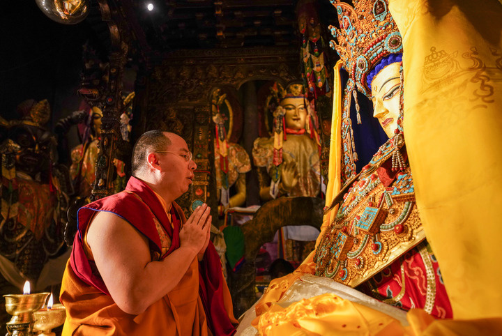 Panchen Erdeni Chos-kyi rGyal-po besuchte am Dienstag den Jokhang-Tempel, das ehrwürdigste Kloster in Lhasa, der Hauptstadt des Autonomen Gebiets Xizang im Südwesten Chinas.