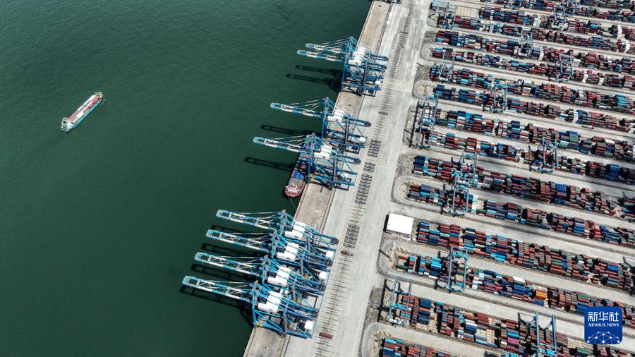 Ein Containerschiff legt am automatischen Containerterminal des Hafens an. (Foto von Zhang Ailin/ Xinhua)