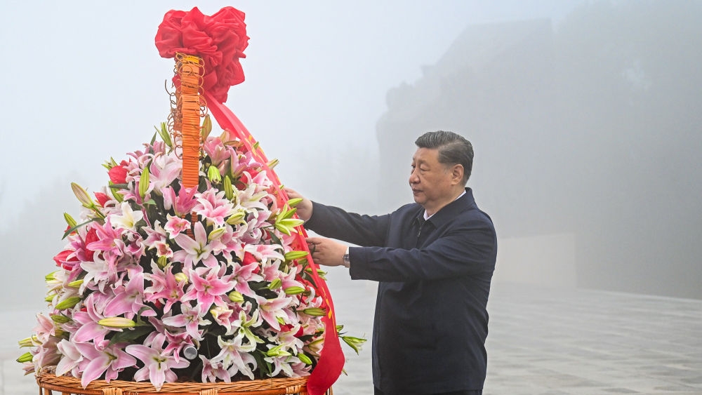 Während seiner Inspektionsreise in Yangquan besuchte Xi den Denkmalplatz sowie die Gedenkhalle der „Hundert-Regimenter-Offensive“ und überreichte den Märtyrern Blumenkörbe, um an die Heldentaten der Märtyrer zurückzudenken und die glorreiche Geschichte der Kommunistischen Partei Chinas wiederbeleben zu lassen.
