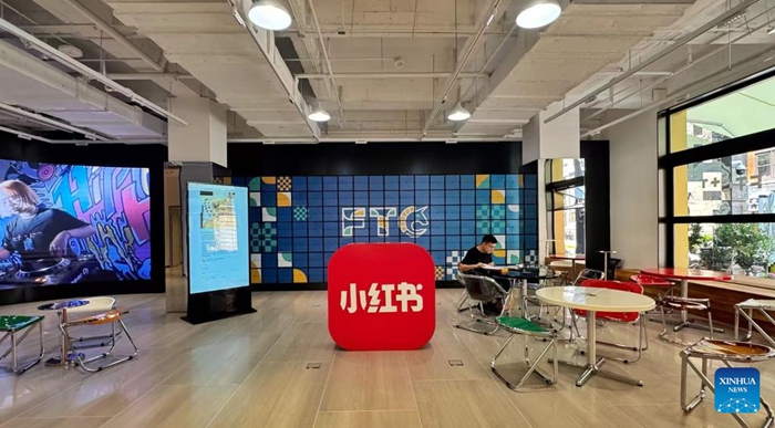 Im Bund FTC, einem der öffentlichen Räume für die Erstellung hochwertiger Internetinhalte im Bezirk Huangpu im ostchinesischen Stadtteil Shanghai, am 15. Juli 2025. (Foto von Cai Weishuai/Xinhua)