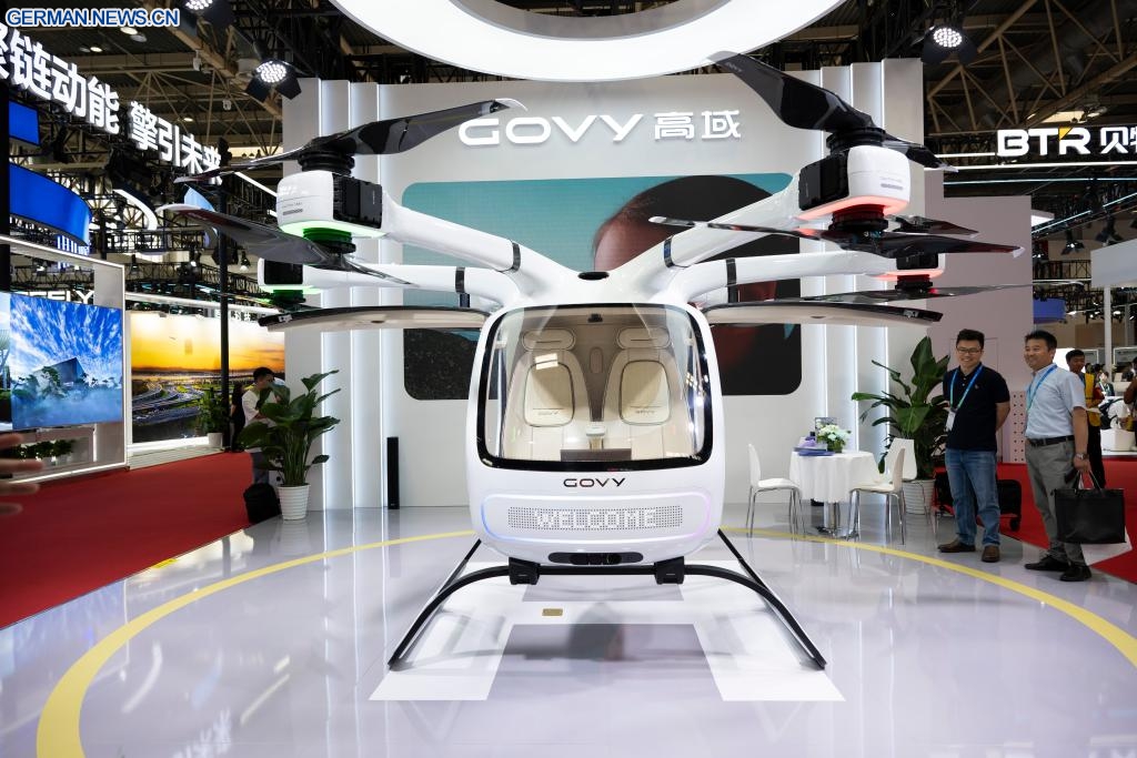 Besucher informieren sich am Stand von GOVY über ein Fluggerät im bodennahen Luftraum während der dritten Chinesischen Internationalen Lieferkettenmesse (CISCE) in Chinas Hauptstadt Beijing, 16. Juli 2025. Die Messe mit dem Thema „Die Welt für eine gemeinsame Zukunft verbinden “ wurde vom Chinesischen Rat zur Förderung des internationalen Handels veranstaltet und am Mittwoch in Beijing eröffnet. (Quelle: Xinhua/Fu Tian)