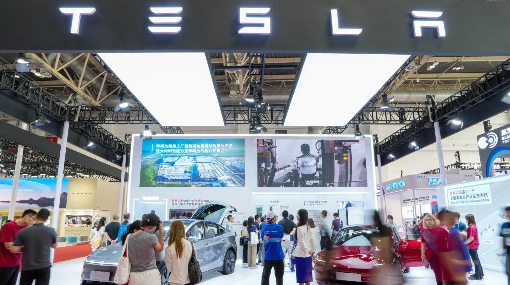 Ausstellungsbereich von Tesla auf der dritten China International Supply Chain Expo. (19. Juli 2025, Xinhua)