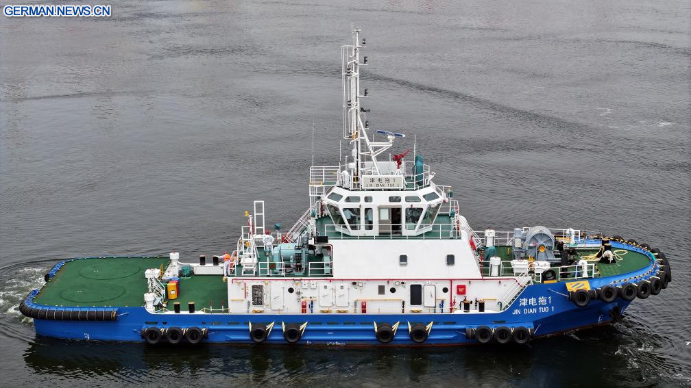 Eine „grüne Flotte“ bestehend aus vier vollelektrischen Hafenschleppern ist am Mittwoch von einem Hafen in Tianjin aus in See gestochen.