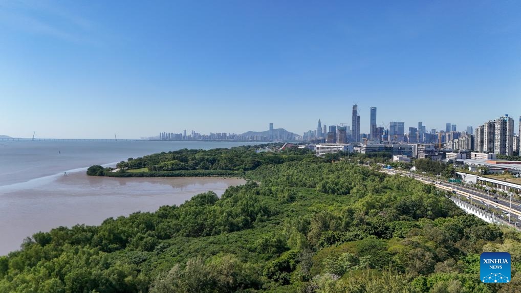 Das Luftbild zeigt das Mangroven-Feuchtgebiet Futian in Shenzhen. (29. November 2024, Xinhua)