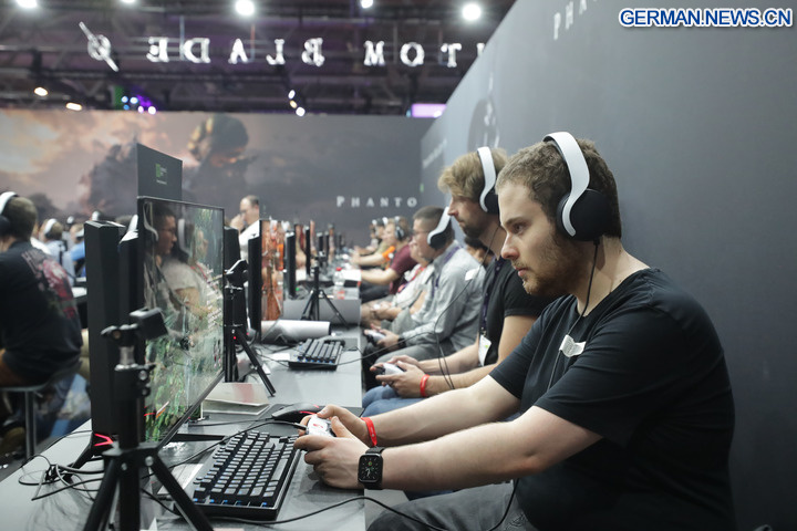 Besucher testen das Spiel „Phantom Blade Zero“ auf der Gamescom 2025 in Köln in Deutschland, 20. August 2025. (Xinhua/Zhang Fan)