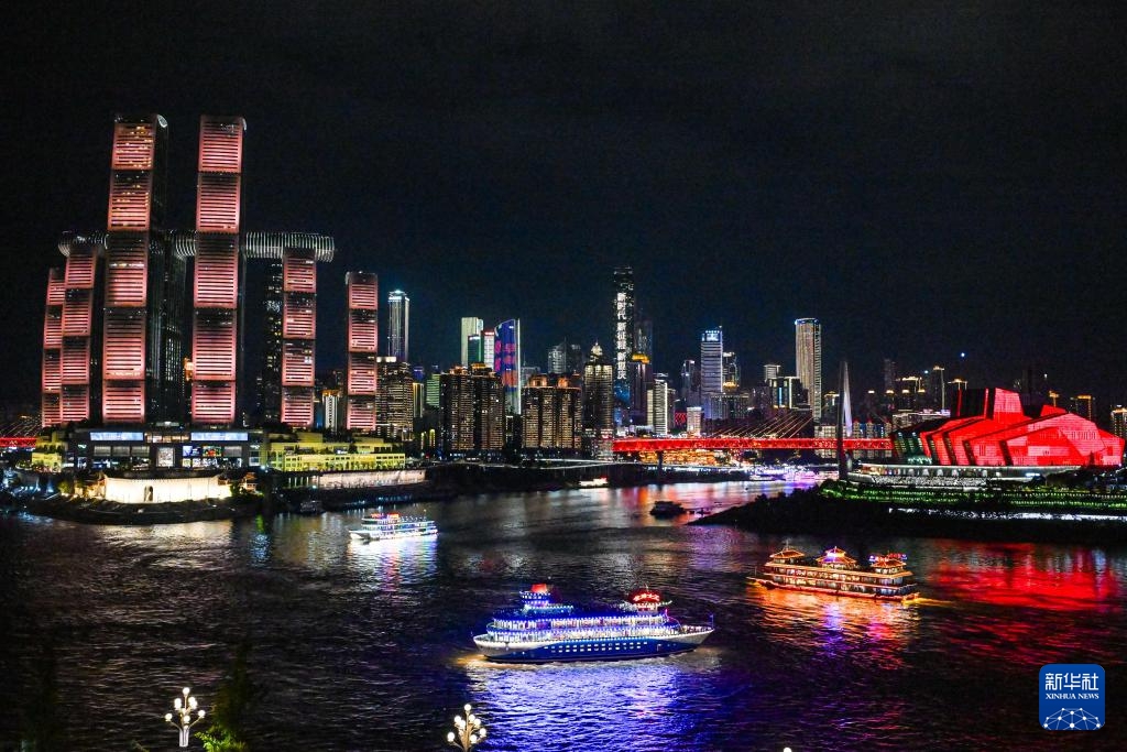 Das Foto zeigt die Nachtlandschaft in Chongqing. (23. August 2025, Xinhua)