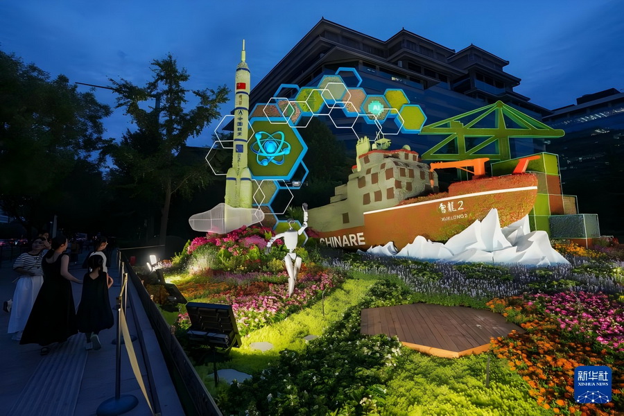 Das Blumenbeet „Wissenschaft und Technologie macht stark“ (Foto: Ju Huanzong/Xinhua)