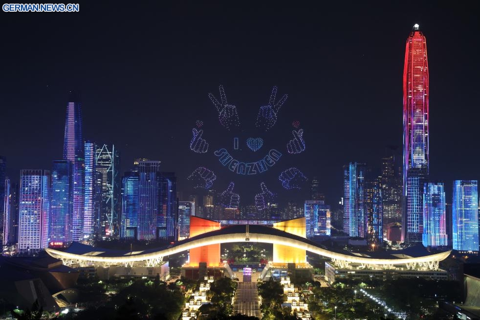 Drohnen-Lichtshow zum 45. Jahrestag der Sonderwirtschaftszone Shenzhen aufgeführt