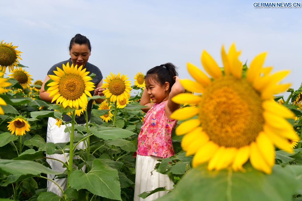 Sonnenblumen in Jinan in Ostchina ziehen Besucher an