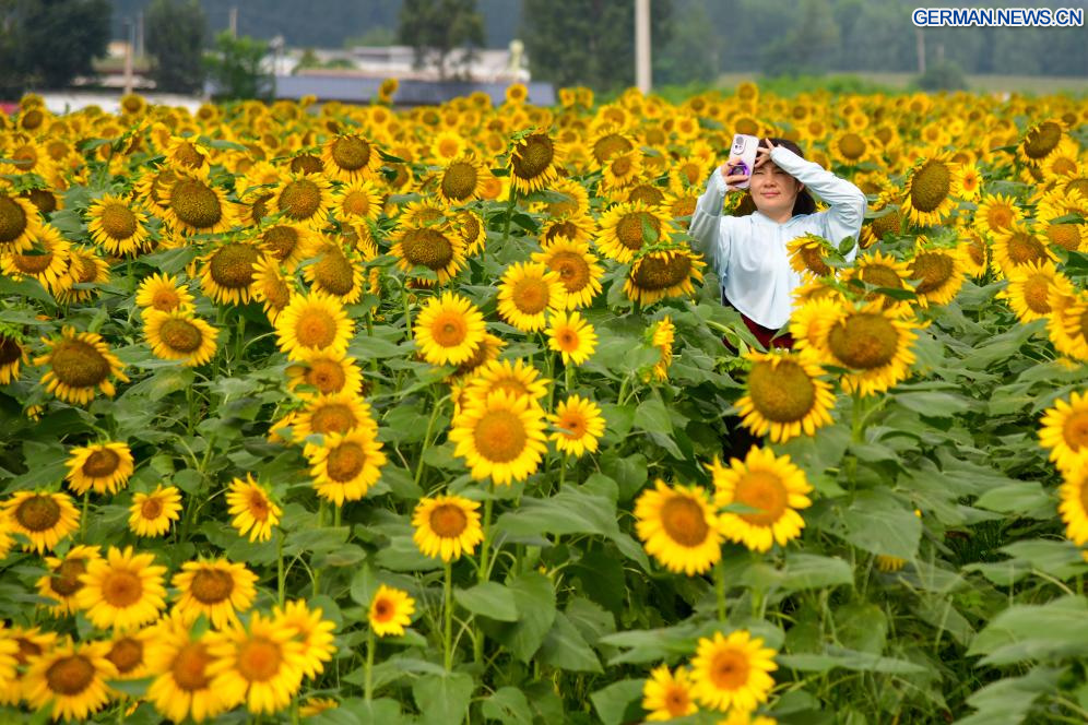 Sonnenblumen in Jinan in Ostchina ziehen Besucher an