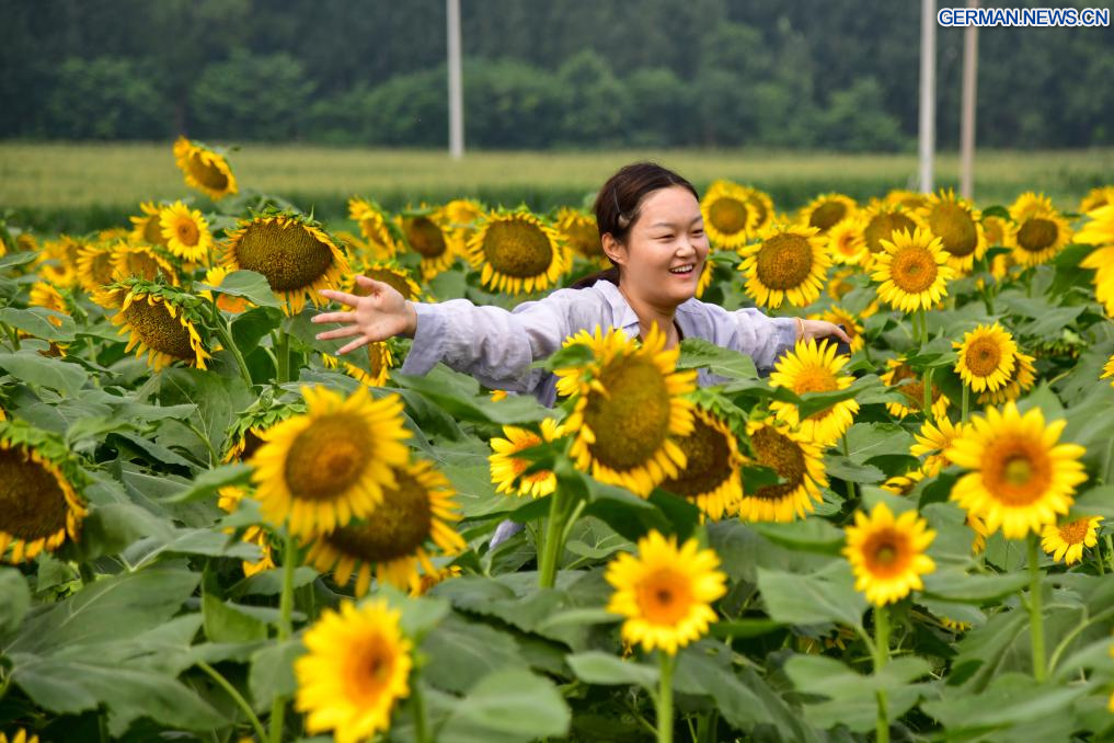 Sonnenblumen in Jinan in Ostchina ziehen Besucher an