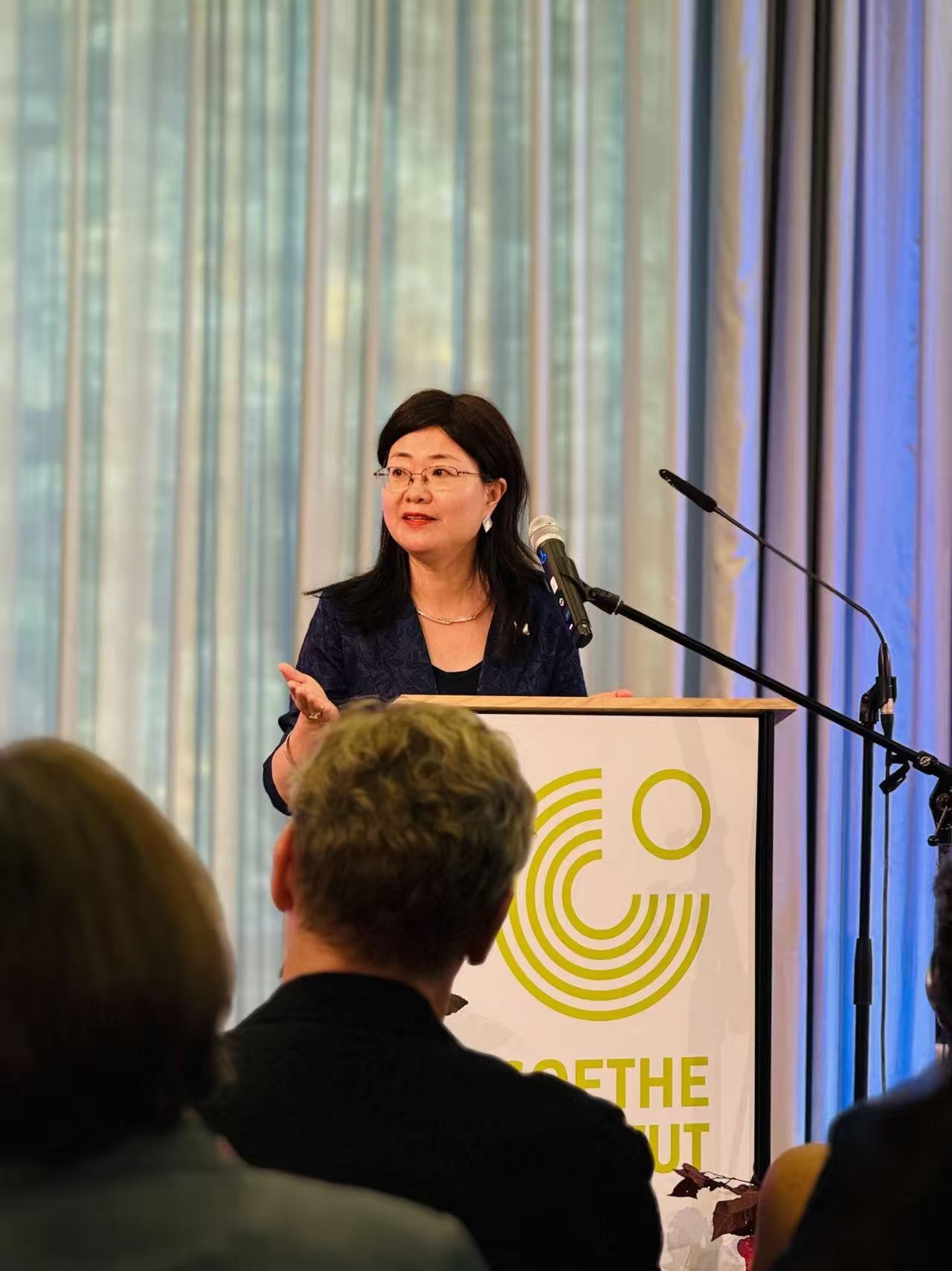 Die Professorin an der Zhejiang-Universität „baut durch die deutsche Sprache Brücken zwischen Deutschland und China und wirbt damit für Verständigung zwischen den verschiedenen Kulturen und Gesellschaften“, erklärte Gesche Joost, Präsidentin des Goethe-Instituts, anlässlich des Festakts.