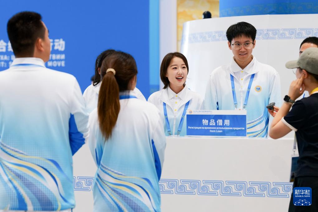 Das Bild zeigt Freiwillige im Medienzentrum für SOZ-Gipfel 2025. (31. August 2025, Xinhua)