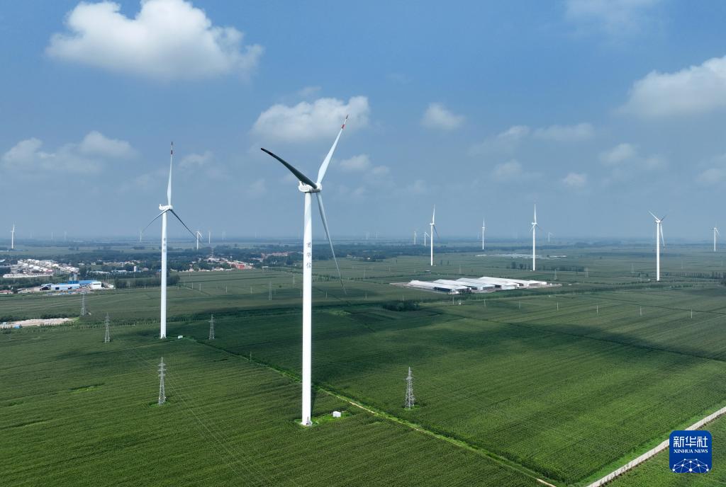Der Windpark in der Nähe des Dorfes Hanzhuang, Stadt Hengshui, Provinz Hebei. (21. August 2024, Xinhua)