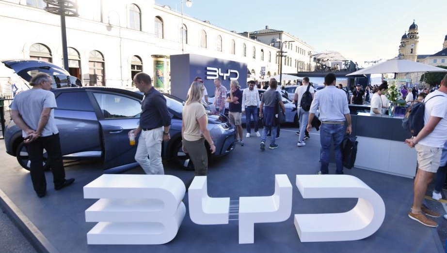 Besucher besichtigen auf der IAA Mobility 2024 die Autos des chinesischen Autoherstellers BYD. (Foto vom 5. September 2024, Xinhua)