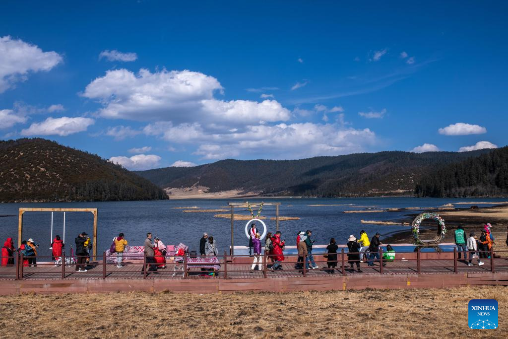 Touristen besuchen am 9. März 2023 den Potatso-Naturpark in Shangri-La. (Xinhua/Hu Chao)