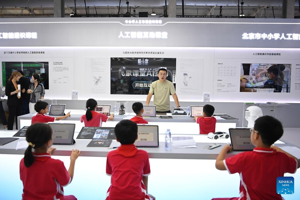 Schüler haben Unterricht in einem interaktiven Klassenzimmer mit künstlicher Intelligenz (KI). (11. September 2025, Xinhua)