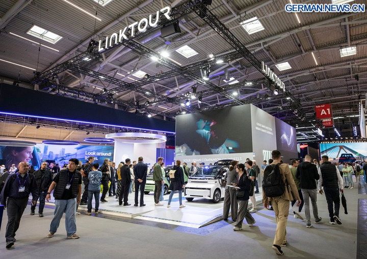 Das Foto zeigt Besucher im Ausstellungsbereich von LinkTour auf der IAA Mobility 2025 in München, 10. September 2025.