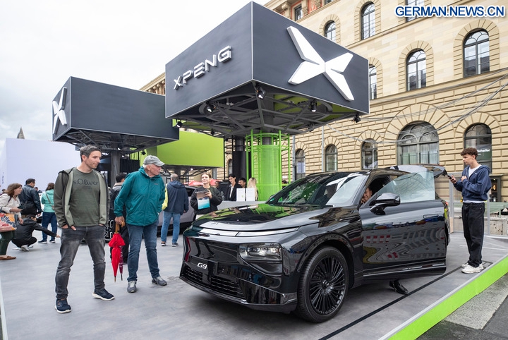 Das Foto zeigt Besucher im Ausstellungsbereich von XPeng auf der IAA Mobility 2025 in München, 9. September 2025.