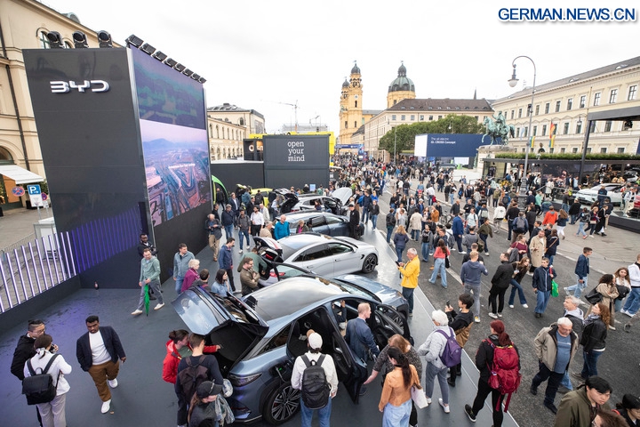 Das Foto zeigt Besucher im Ausstellungsbereich von BYD auf der IAA Mobility 2025 in München, 9. September 2025.