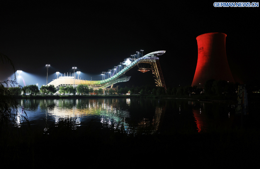 Das Foto zeigt eine Nachtansicht des Shougang-Parks in der chinesischen Hauptstadt Beijing, 11. September 2025. (Xinhua/Zhang Chenlin)