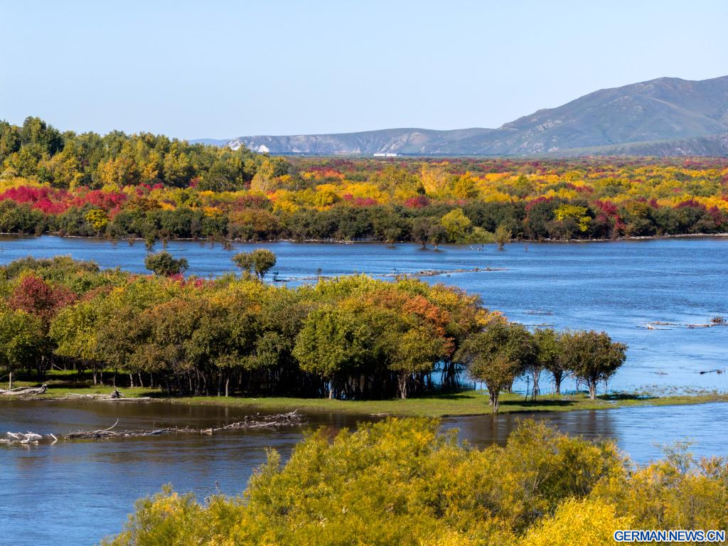Ein Blick auf Feuchtgebiet rund um Ergune-Fluss in Chinas Innerer Mongolei