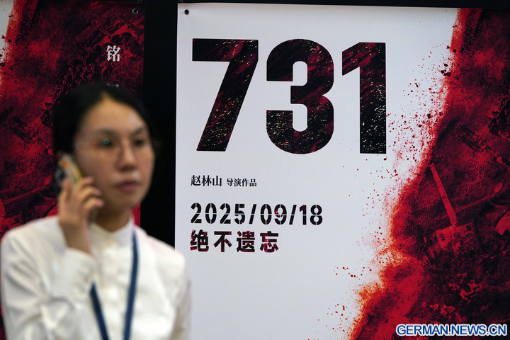 Das Foto zeigt ein Flimplakat des Films „Evil Unbound“ bei der Weltpremiere in Harbin in der chinesischen Provinz Heilongjiang im Nordosten Chinas, 17. September 2025. (Xinhua/Wang Song)