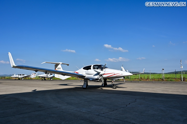Das Foto zeigt ein Flugzeug der allgemeinen Luftfahrt vor einem Testflug in der Gemeinde Wanzhi der Stadt Wuhu in der ostchinesischen Provinz Anhui, 3. Juli 2025. (Xinhua/Zhang Cheng)